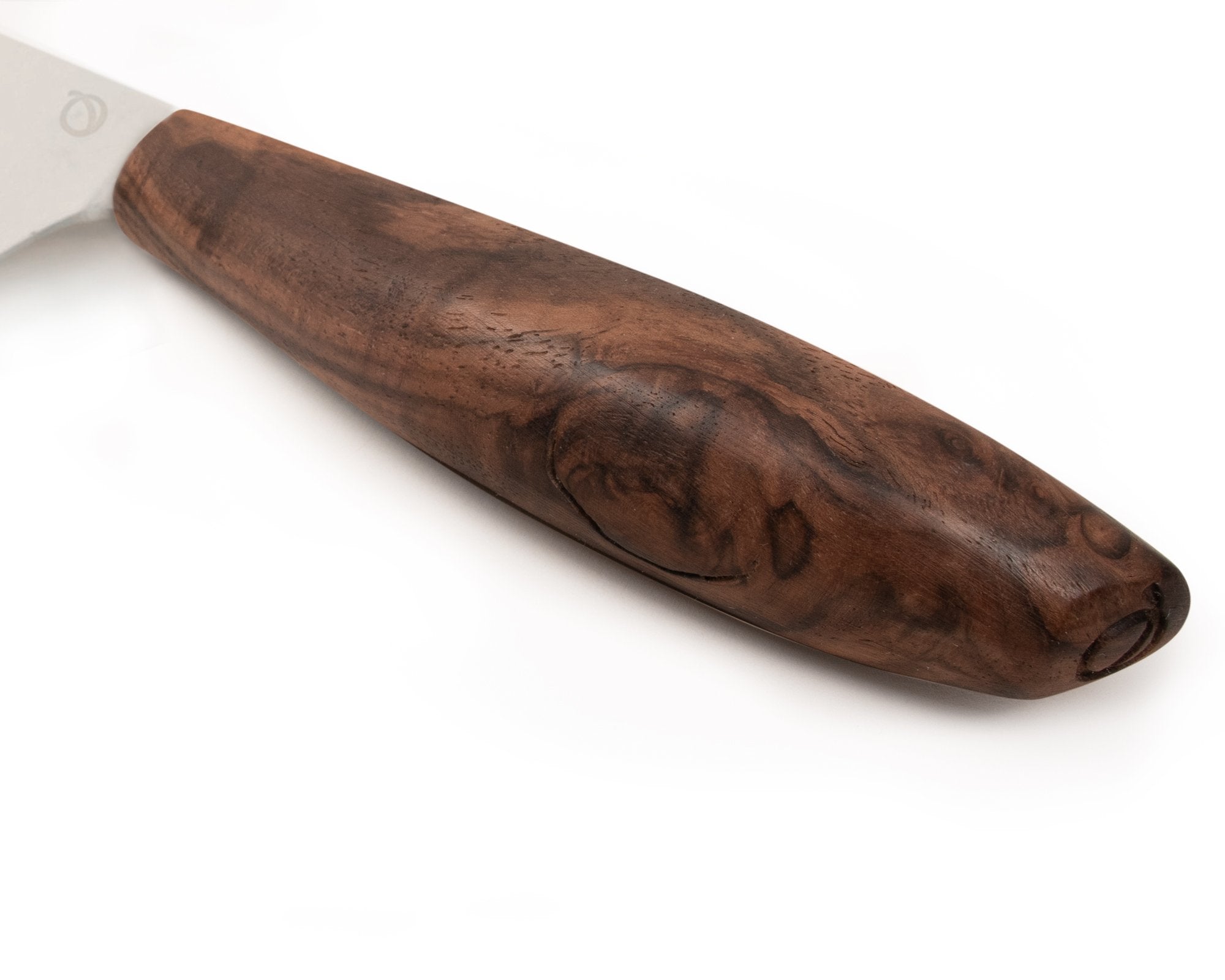 Le couteau de chef d’Olav est probablement le premier couteau de cuisine à utiliser la technologie de la poudre métallique de troisième génération. Cet acier rare et spécial est connu pour sa répartition de carbure très fine et est considéré comme le meilleur acier polyvalent.